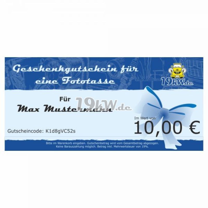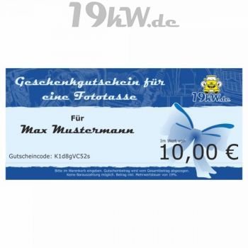 Geschenkgutschein für eine individuell gestaltete Fototasse im Wert von 10,00 €.