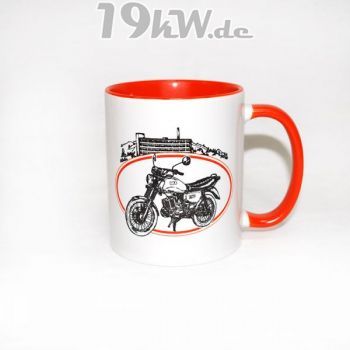 Tasse beidseitig bedruckt mit farbig abgestimmter Innenseite und Henkel.