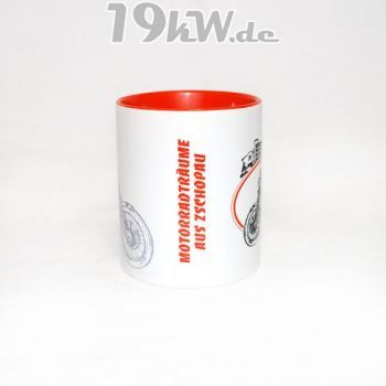 Tasse beidseitig bedruckt mit farbig abgestimmter Innenseite und Henkel.