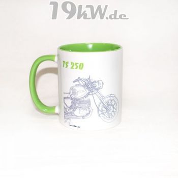 Tasse beidseitig bedruckt mit farbig abgestimmter Innenseite und Henkel.