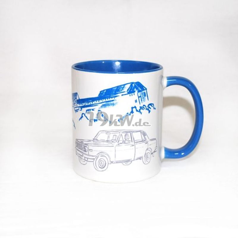 Tasse beidseitig bedruckt mit farbig abgestimmter Innenseite und Henkel.