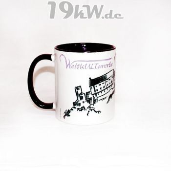 Tasse beidseitig bedruckt mit farbig abgestimmter Innenseite und Henkel.