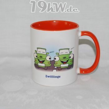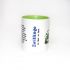 Tasse beidseitig bedruckt mit farbig abgestimmter Innenseite und Henkel.