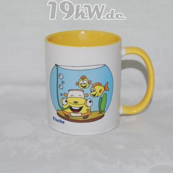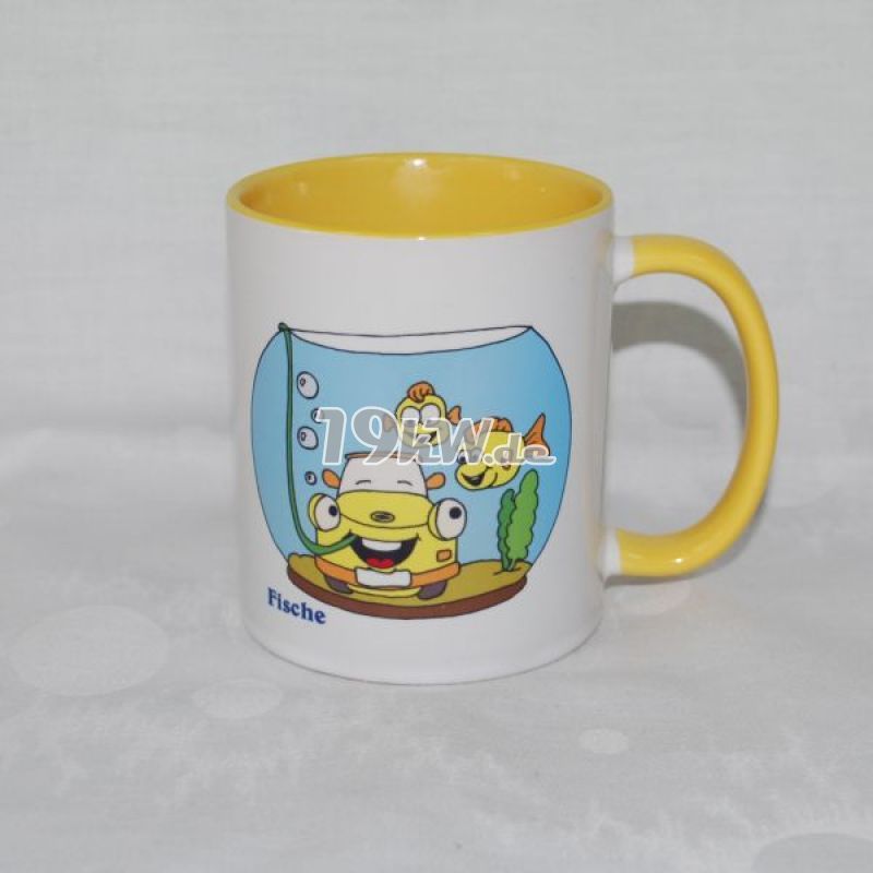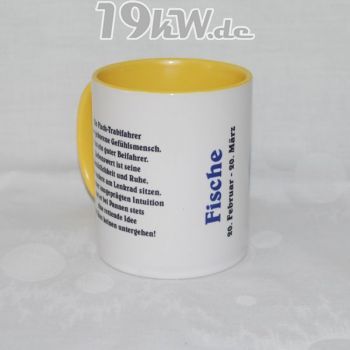 Tasse beidseitig bedruckt mit farbig abgestimmter Innenseite und Henkel.