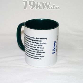 Tasse beidseitig bedruckt mit farbig abgestimmter Innenseite und Henkel.