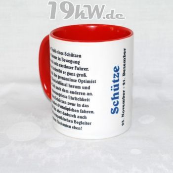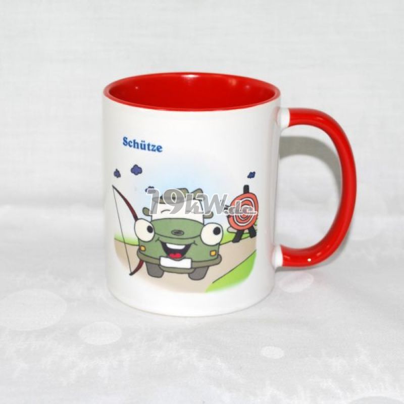 Tasse beidseitig bedruckt mit farbig abgestimmter Innenseite und Henkel.