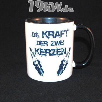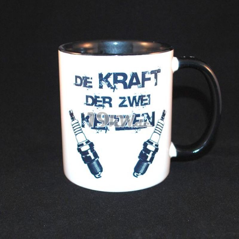 Tasse zweifarbig mit kultigem Aufdruck in Schwarz.