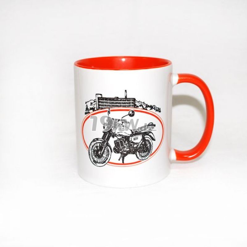 Tasse beidseitig bedruckt mit farbig abgestimmter Innenseite und Henkel.