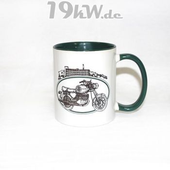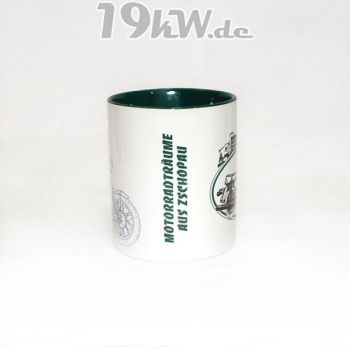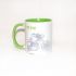 Tasse beidseitig bedruckt mit farbig abgestimmter Innenseite und Henkel.