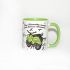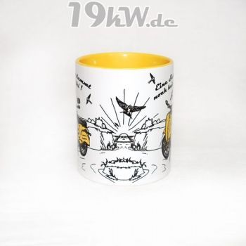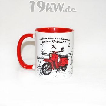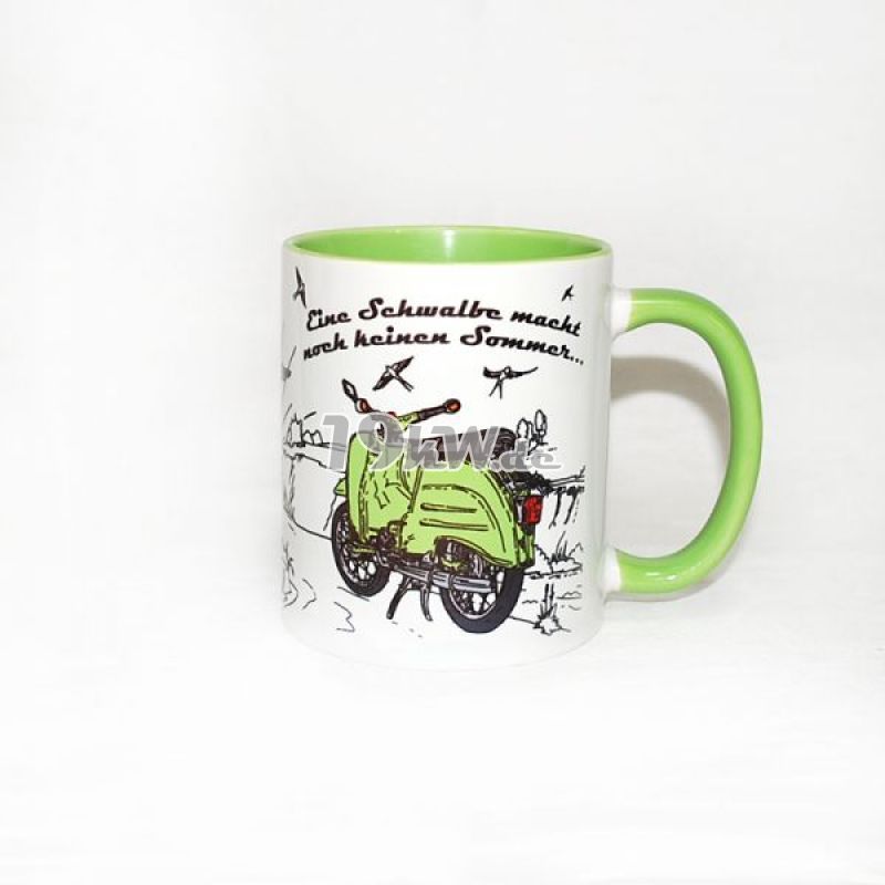 Tasse zweifarbig mit dem Kultmoped des Ostens, das in Schwarz geduckt ist.