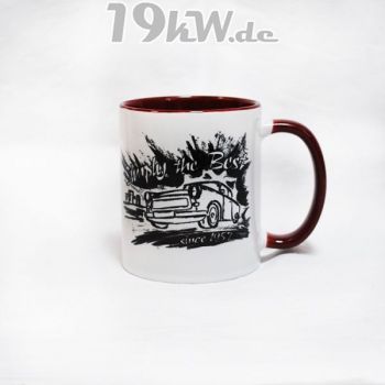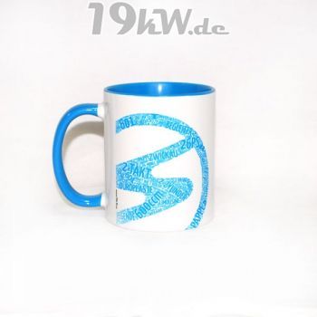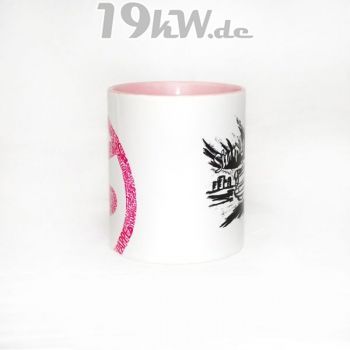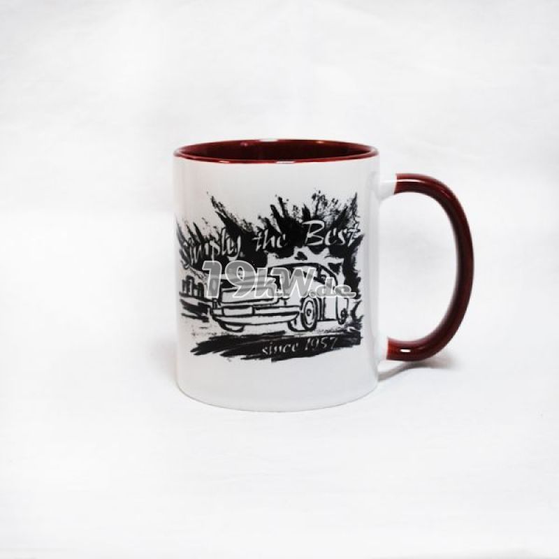 Tasse beidseitig bedruckt mit farbig abgestimmter Innenseite und Henkel.
