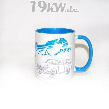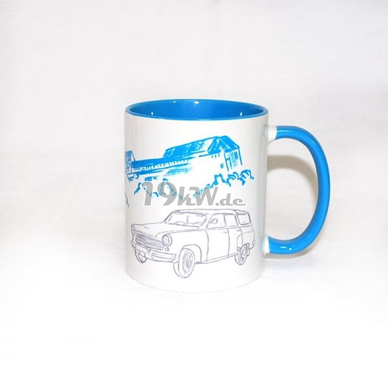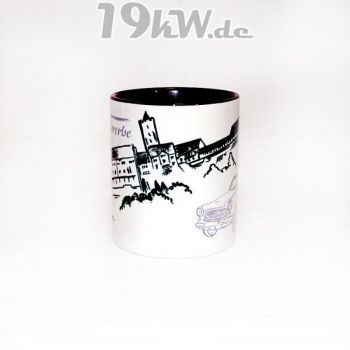 Tasse beidseitig bedruckt mit farbig abgestimmter Innenseite und Henkel.